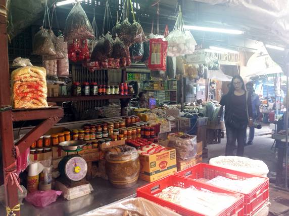 stands de frutas, verduras, hortalizas, especias y aderezos típicos de la cocina asiática.