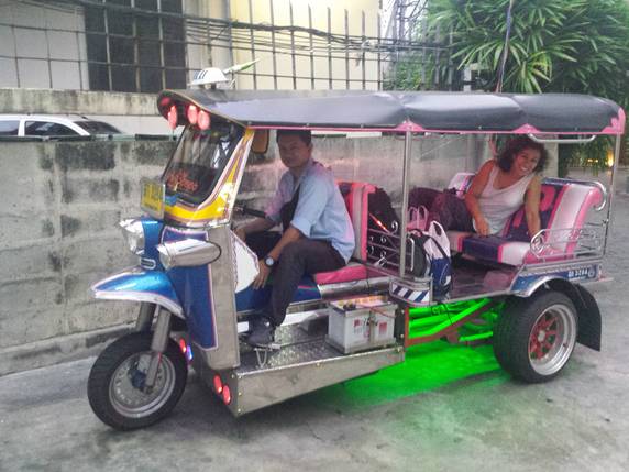 Algunos tuktuks ofrecen el precio elevado de siempre, cuando ofreces precio a la baja, contra atacan con un precio intermedio todavía alto, pero con la exigencia de pasar por alguna tienda con la que tiene concertación. Hay que seguir negociando a la baja, y nada de tiendas. 100 bahts vuelta al hotel, y 100 mas a la estación de tren, donde cogemos un tren nocturno a Chiang Mai.