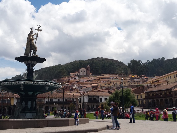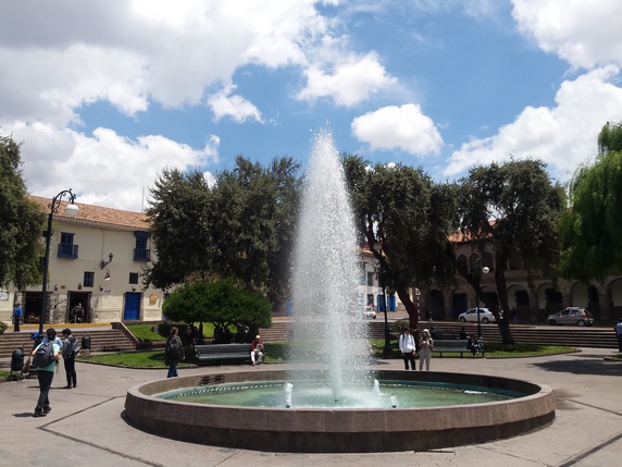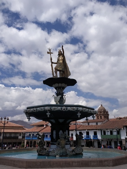 paccha, fuente de agua inca. En un lado de la plaza se encuentra la iglesia más antigua de Cusco, la iglesia de San Blas.