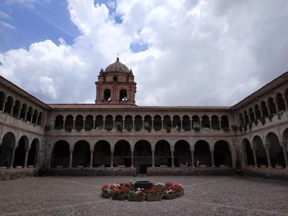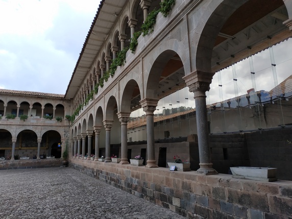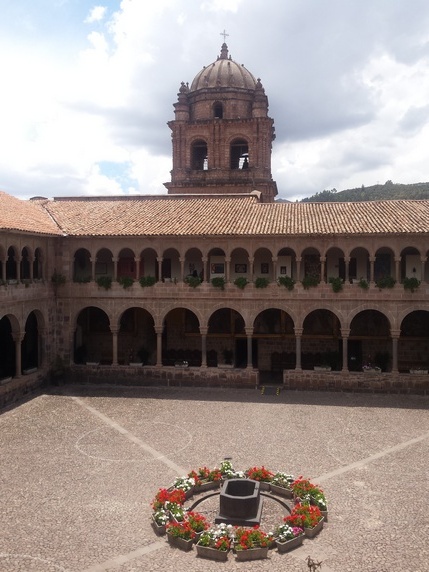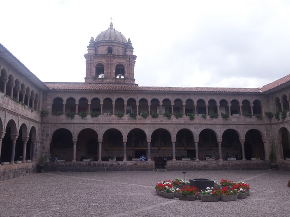 Convento Santo Domingo (Qorikancha). Su torre está adornada con tallados del estilo barroco, y en el interior cuenta con una fantástica pinacoteca de los siglos XVII y XVIII. La sala de acceso tiene un techo abovedado cubierto con pintura mural que representa símbolos de la crucifixión y su gran portón de madera tallada es el único ejemplo de estilo mudéjar en Cuzco.