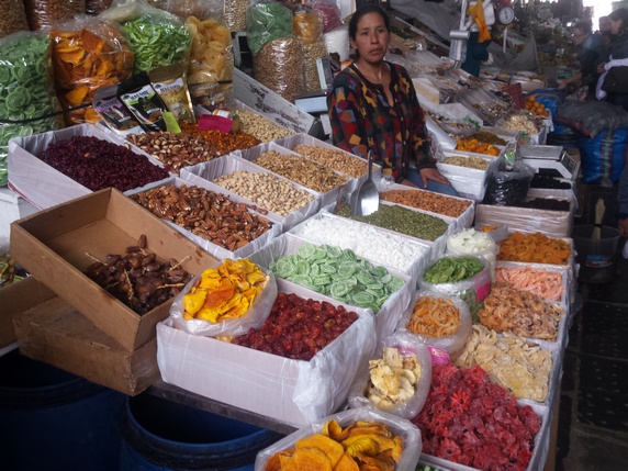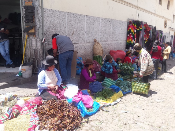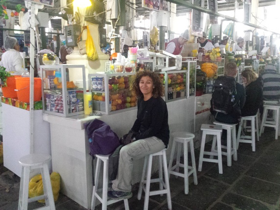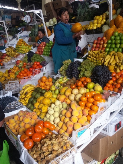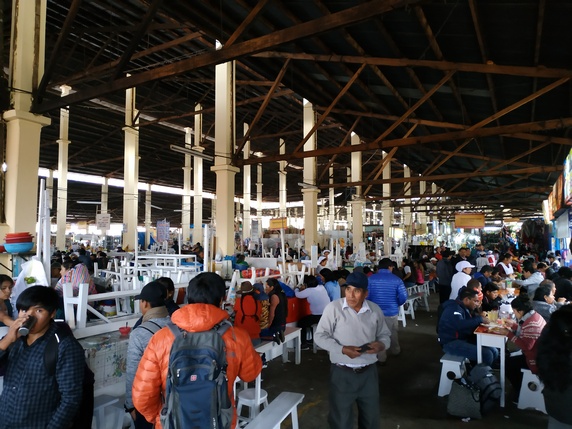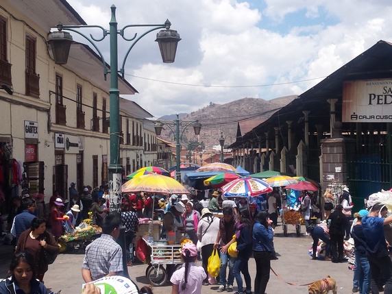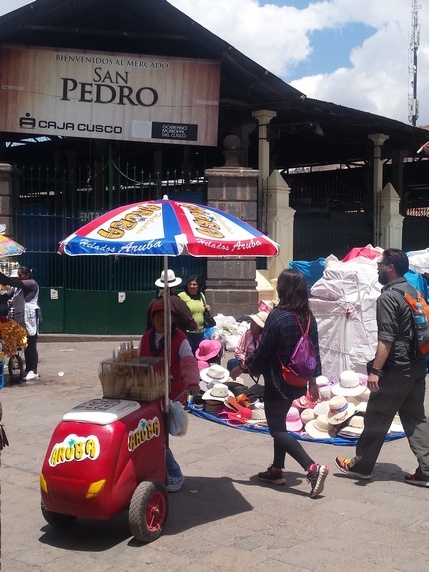 Paramos en una librería a comprar “Todas las sangres” de Jose Maria Arguedas, un autor local que nos han recomendado. Pasamos por la agencia Wayan Mundo a que nos devuelvan el dinero del malogrado viaje a Aguas Calientes, y volvemos al Mercado de San Pedro a comer, sopa de chuño, pescado con frijoles y pescado con patatas, 10 soles. De postre paramos en una jugueria dentro del mercado y pedimos zumo de mango con leche y de lúcuma con leche, 14 soles los dos. Paseamos por el centro sin rumbo fijo, Cusco es una ciudad ideal para esto, y encargamos el tour al valle sagrado para el día siguiente.