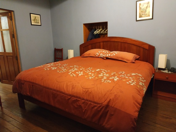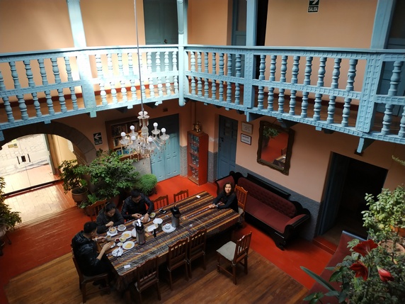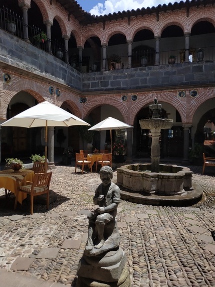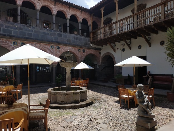Hotel Suecia I, 120 soles, Cuzco. Es una bonita casa colonial a menos de un minuto de la Plaza de Armas. Las habitaciones están distribuidas alrededor de un patio interior en el que se sirve el desayuno. Habitación 309, pequeña, pero muy tranquila, cama doble muy cómoda, baño privado con muy buena presión de agua en la ducha. Habitación 208, más grande que la anterior, cama tamaño