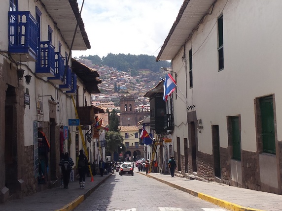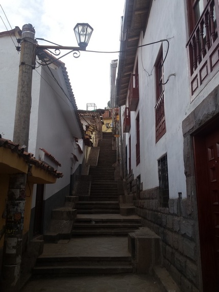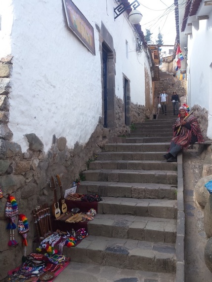 Tras dar un paseo por las laberínticas calles del barrio de San Blas, volvemos al centro para comprar los billetes para ir mañana a Aguas Calientes vía Santa Maria en la agencia Wayna Mundo (35 soles), una de las muchas que hay en avenida del Sol.