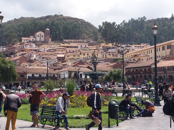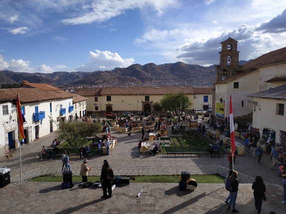 plazoleta de San Blas, un bonito balcón sobre la ciudad de Cusco, con mucho espacio para sentarse, comprar artesanía y disfrutar de su enorme