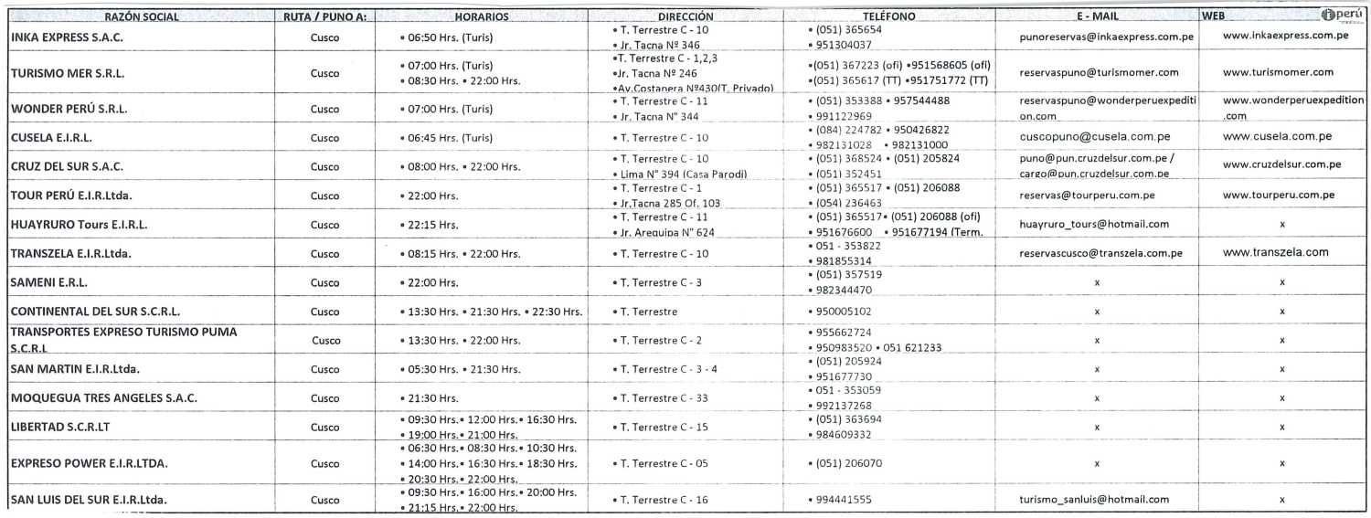 Puno alrededor de las 10:30. Miramos los horarios de las diferentes compañías para ir a Cuzco y nos decantamos por Libertad, no es una de las VIP dedicadas a turistas, pero sale dentro de poco más de una hora. Precio asiento VIP con inclinación 160º en planta inferior, 30 soles; asiento normal en planta superior 20 soles.