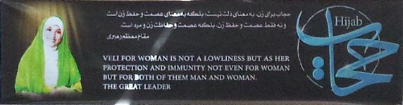 Propaganda gubernamental en las calles, anima a las mujeres a cubrirse de forma natural, con orgullo y dignidad, sin que deban sentir vergüenza por ello. Y de hecho, ya sea por obligación o por tradición, el chador o el rayón negros son de las prendas más usadas. A pesar de ello, y cumpliendo escrupulosamente la ley, las chicas jóvenes cuidan con esmero lo único que pueden mostrar con absoluta libertad, el rostro: cejas perfectamente depiladas y perfiladas, labios pintados, maquillaje, y mucha cirugía nasal, fácilmente reconocible por las tiritas que les cubre la nariz tras la operación. Es increíble, las/los contareis por docenas.