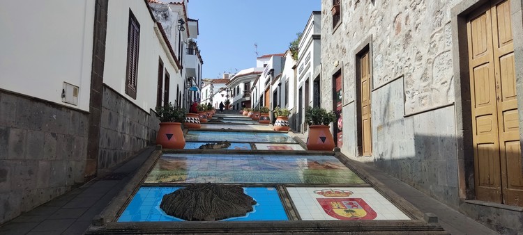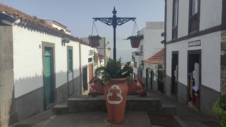 Firgas, a 25 km de la capital, tiene un pequeño centro urbano peatonal, de casas antiguas y calles decoradas con azulejos. El centro es la Plaza de San Roque donde se ubica la iglesia parroquial (año 1502), el monumento a San Juan de Ortega, primer patrón de la villa, el ayuntamiento y el edificio de la Casa de la Cultura. En el paseo de Gran Canaria, una de las calles laterales a la plaza, aprovechando la pendiente natural, hay una curiosa cascada de agua de 30 metros de largo, en piedra de cantería, flanqueada en las paredes de la calle por los 22 escudos heráldicos que representan a todos los municipios de Gran Canaria, además del escudo insular. También puede verse un antiguo molino de agua usado para moler gofio y la Fuente Conmemorativa, erigida en piedra de cantería para celebrar los 500 años de la Fundación de Firgas.