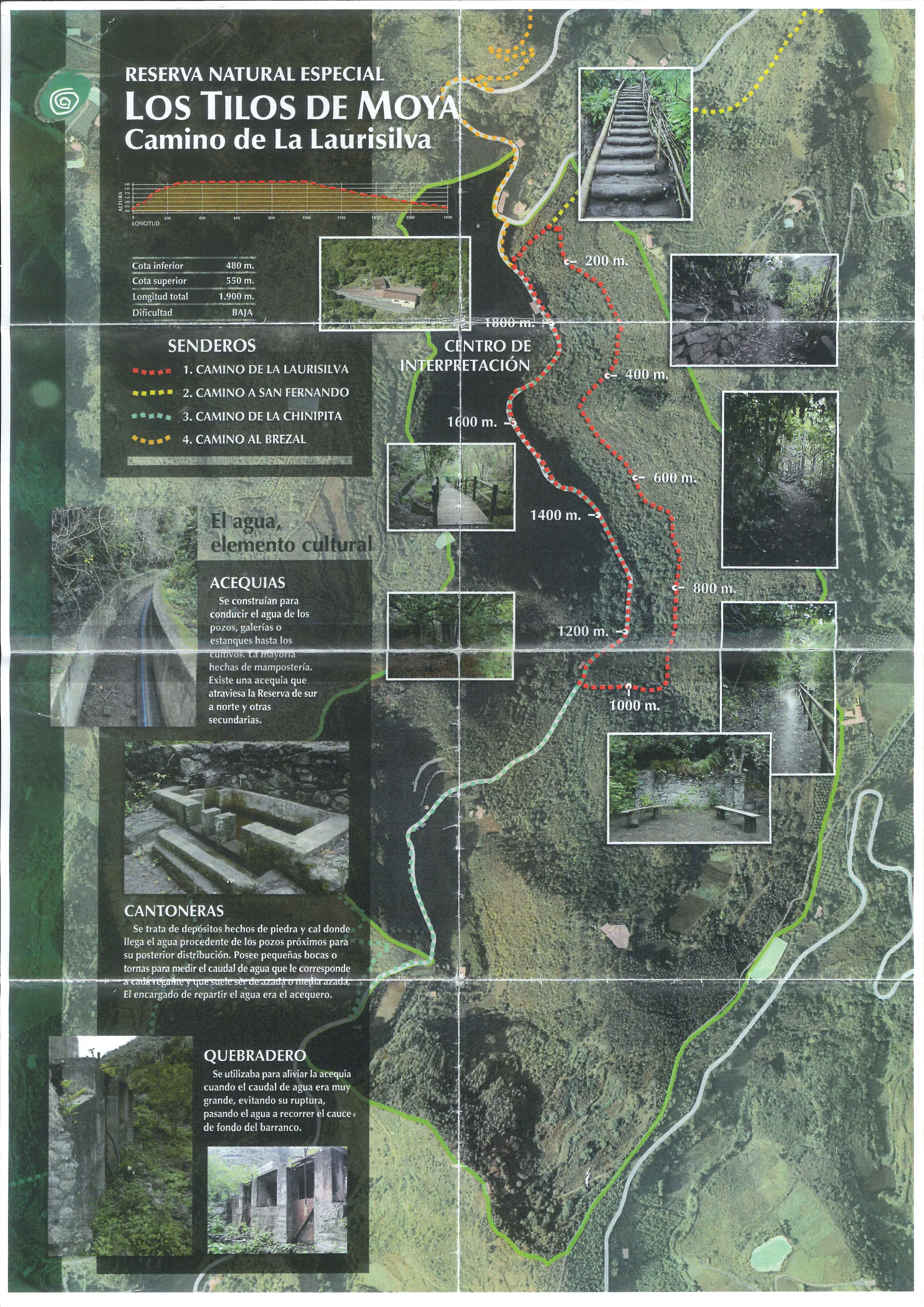Sendero de los Tilos de Moya, una ruta circular de apenas 2 km, que parte del Centro de Interpretación de los Tilos a pocos kilómetros del pueblo. Toda la ruta se realiza dentro de la Selva de Doramas, un bosque espeso donde predominan los tilos y que tiene una antigüedad de 500 años. La ruta puede dividirse en dos, la parte baja paralela a la carretera donde la vegetación es densa y predomina la sombra; y la parte alta, tras cruzar la carretera, mas abierta y soleada, donde hay plantas mas bajas y cactus, que nos llevan de vuelta hasta el parquing en el punto de partida.