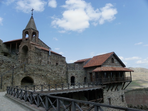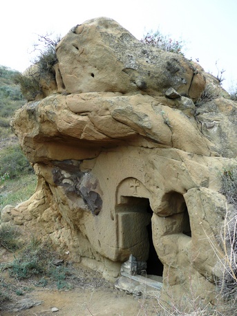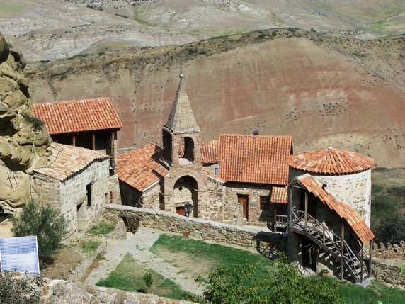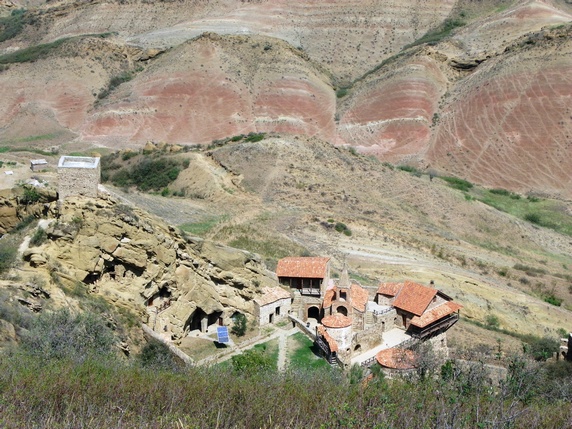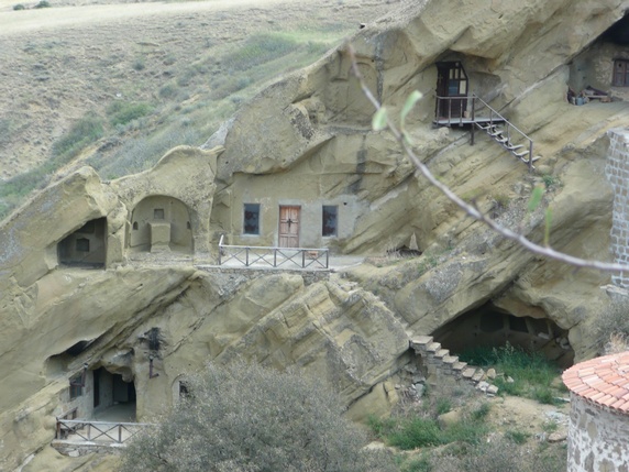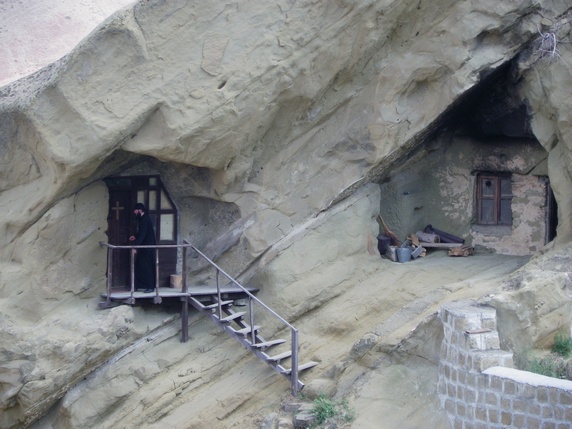 monasterio de Lavra, junto al parquing, hay un grupo de cuevas donde todavía viven algunos monjes, protegidas por un muro y una torre de vigilancia construidos en el siglo XVIII alrededor de un patio, una iglesia y algún otro edificio. Aquí está la tumba de Davit Gareja y su discípulo Lukiane.