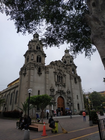 Estamos a 17º y el cielo está nublado, por lo que nos cuentan así es el tiempo en Lima la mayor parte del año, sin sol. Ni frio ni calor, una buena temperatura para pasear. Intentamos visitar Huaca Pucllana, un sitio arqueológico de la cultura lima que data del año 700, pero los martes cierra. Otra vez será.