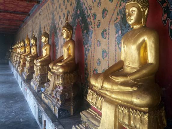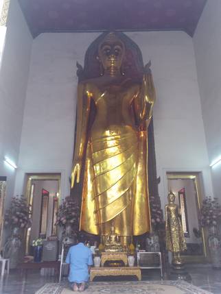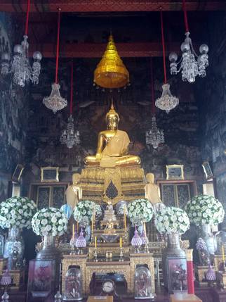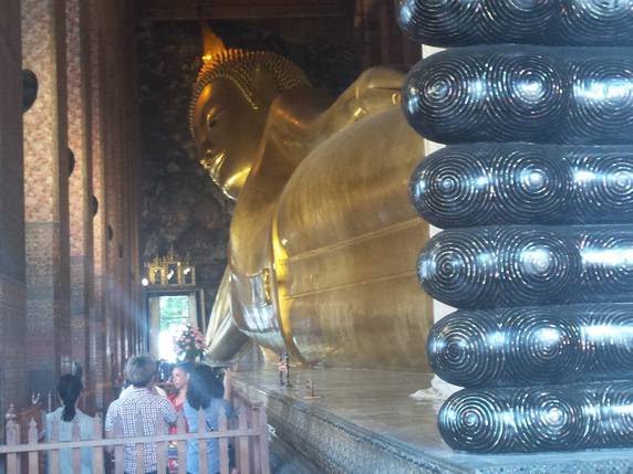 acceso 200 bahts), construido sobre las ruinas de un templo anterior, es el templo budista más antiguo y más grande de Bangkok. Además, es hogar de más de 1.000 imágenes de Buda, más que cualquier otro templo en el país, y su Buda Reclinado de 46 metros de largo cubierto de hoja de oro, es el más grande de Tailandia. Para mi gusto el mejor templo de la ciudad sin dudarlo. Tiene un tamaño manejable que permite disfrutar de él por completo, no está restringido el acceso a ninguno de sus edificios, apneas hay visitantes, e incluso hay zonas ajardinadas para descansar.