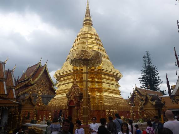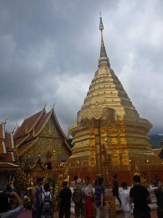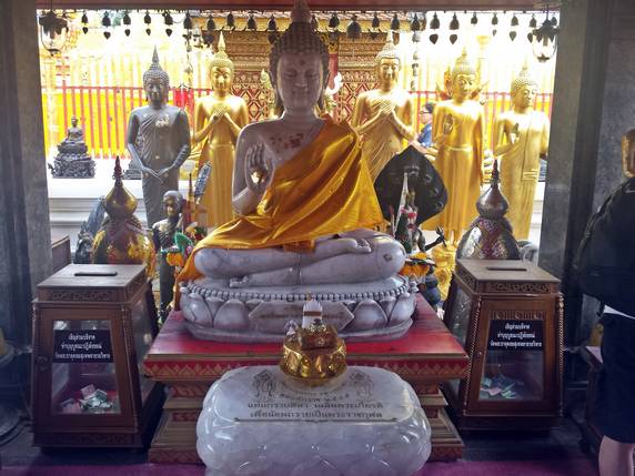 Wat Phra Doi Suthep está construido en la cima de una montaña, a unos 15 km de Chiang Mai. Cuenta la leyenda, que incapaz de decidir sobre el sitio adecuado donde albergar una reliquia sagrada, el rey Kuena colocó la reliquia en la parte trasera de un elefante blanco y esperó a ver hasta dónde la llevaba el animal. El elefante caminó hasta la cima de la montaña de Doi Suthep, barritó tres veces, giró tres veces sobre sí mismo, se arrodilló y murió. El templo se levantó en 1.368 en el lugar escogido.