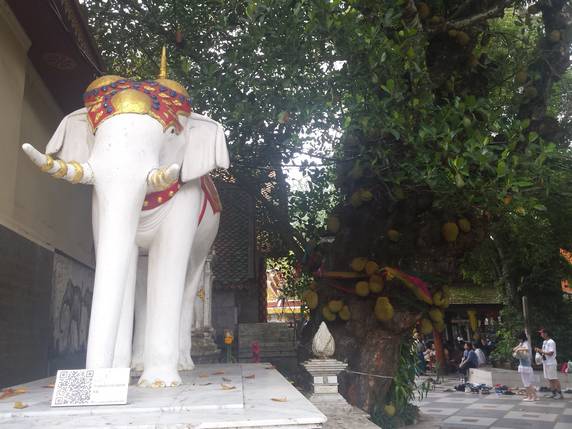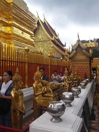 dorado hay pequeños santuarios y pagodas, gongs, campanas, imágenes de Buda y una estatua del elefante blanco. También se puede visitar un pequeño museo con fotografías y reliquias antiguas del templo, y un centro de meditación abierto a locales y extranjeros. Desde la terraza inferior hay vistas sobre Chiang Mai.