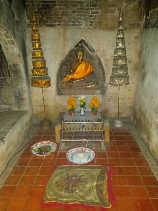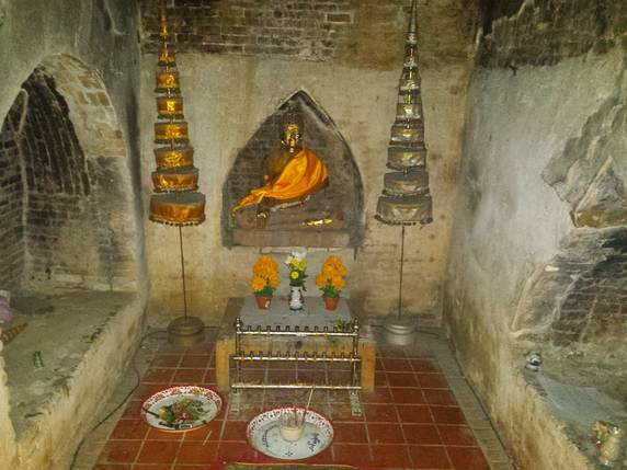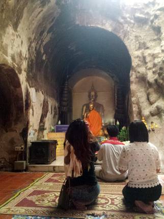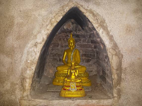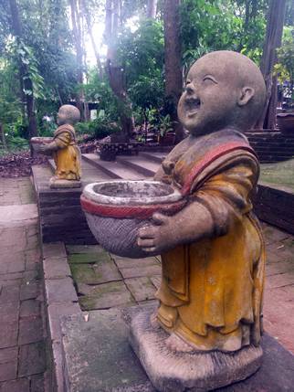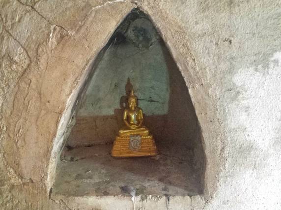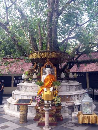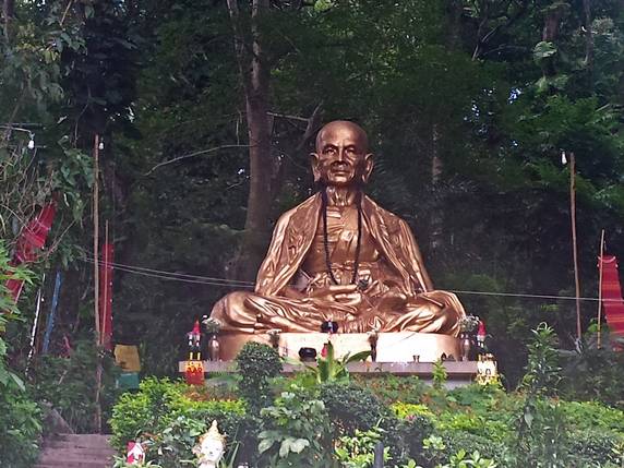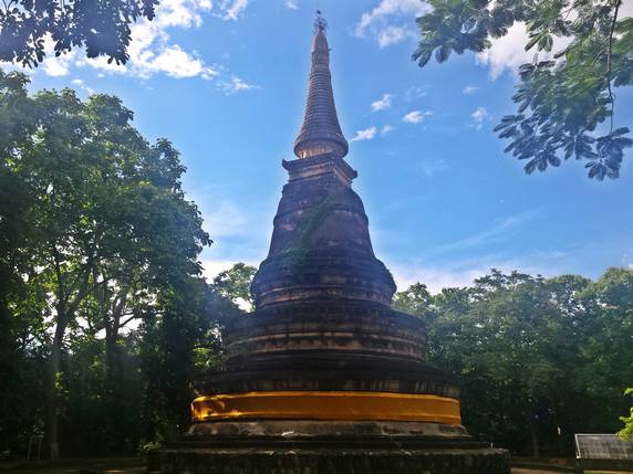 Nuestra última parada es en Wat Umong, un complejo monástico construido durante el siglo XIII. El templo está situado a los pies del monte Doi Pui y los edificios se encuentran distribuidos entre una amplia zona boscosa. Unas escaleras decoradas con nagas llevan hasta la parte alta, donde hay una enorme estupa de piedra. Dispersas por el bosque se encuentran las viviendas de los monjes, estamos en un monasterio activo, y es fácil cruzarse con ellos. A lo largo del camino, bajo los árboles o semi cubiertas por raíces, hay un sin fin de imágenes dañadas y abandonadas. Pero lo que hace peculiar este lugar son los santuarios ubicados en túneles excavados en la montaña, revestidos con paredes de ladrillo, murales budistas, imágenes de Buda, sombrillas de colores y ofrendas de los devotos. El templo dispone también de un centro de meditación y enseñanzas budistas.