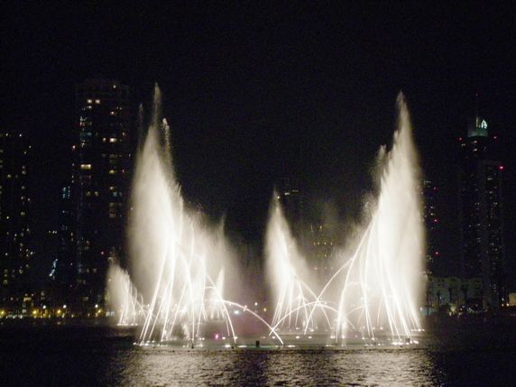 que al ritmo de música clásica, árabe o moderna, lanzan agua hasta