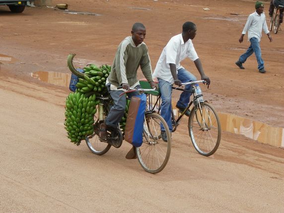 carreteras asfaltadas, bien mantenidas, y donde suele haber poco peligro de cruce de animales domésticos o salvajes, a no ser que estemos cerca de un parque o reserva natural. A los núcleos de población mas pequeños llegan con mas frecuencia pistas y caminos de tierra, que se deterioran con facilidad después de las frecuentes lluvias. En los vehículos viajan tanto personas, como carga de todo tipo, como alguna que otra gallina. Suelen estar en buen estado, aunque los sobrecargan con frecuencia. Probablemente este sea el mayor riesgo, junto con algún conductor de matatu suicida, y la falta de casco en los boda-bodas.