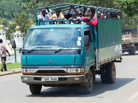 En Kampala el revisor circula con medio cuerpo fuera gritando el rumbo, dile dónde vas y te dirá si debes subir. Dentro de la capital cuestan entre 500 y 2000 shs, entre poblaciones espera pagar unos 10.000 shs por dos horas de trayecto (precio mzungu).