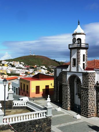 Valverde. La capital de la isla de El Hierro está situada en una verde ladera entre los 570 a 650 mts de altitud, y es la única de las capitales canarias que no tiene costa. Aquí verá pintorescas casas blancas, tejados rojos y jardines llenos de color. Es obligada la visita a la