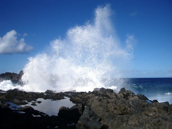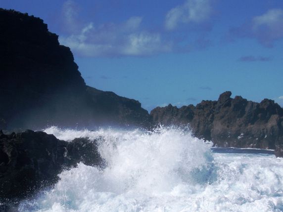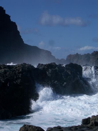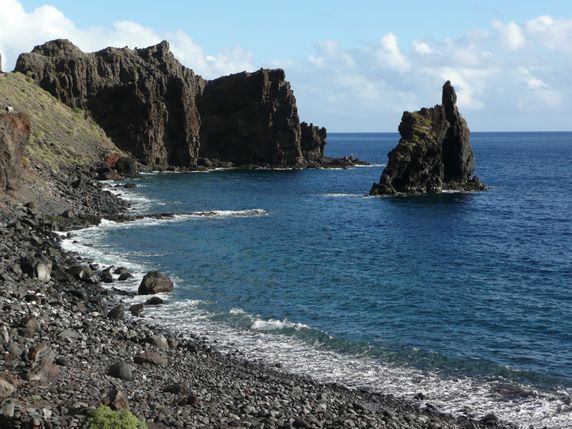 Roque de la Bonanza, una desnuda roca basáltica que se eleva 200 mts sobre el mar a unos pocos pasos de la costa, hasta