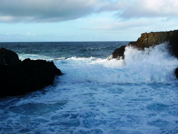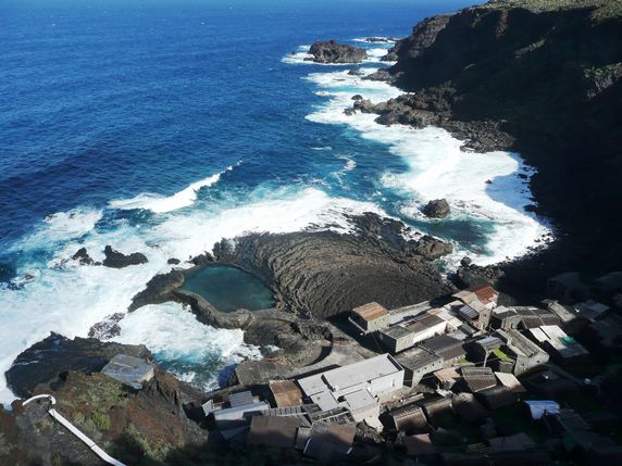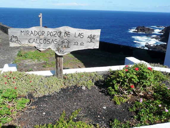 Pozo de Las Calcosas, 50 metros más abajo y a orillas del mar. Se trata de un pequeño pueblo pesquero de cabañas de piedra negra con techos de palma (colmo), que fue reconstruido por los habitantes de Monacal para pasar aquí sus vacaciones. Lo más interesante son unas piscinas naturales preparadas para el baño que se han formado en una lengua de lava, que se nutren y renuevan con el agua del mar constituyendo un oasis de paz en medio de un ajetreado Atlántico. Al pueblo solo se puede llegar después de bajar un sendero serpenteante de empinadas escaleras por el acantilado, pero la recompensa justifica el esfuerzo. Es probablemente el lugar mas bonito de la isla.