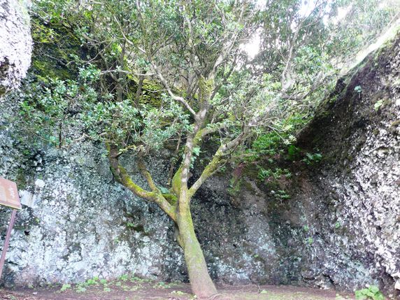 Árbol Santo, el arbol sagrado de los bimmbaches, al que los lugareños llaman Garoé. Cuenta la leyenda que en una ocasión fluyó del árbol agua suficiente para abastecer a toda la isla, ya que las agujas de este pino poseían la rara facultad de acumular grandes cantidades de agua. En El Hierro no hay ríos, ni arroyos en superficie, así que cuando llegaron los conquistadores en el siglo XV, los