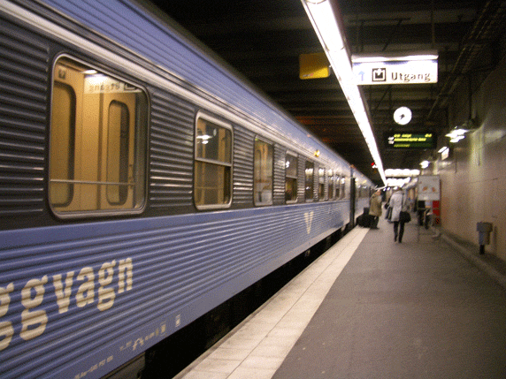 NZ 2. 23:08 Malmö 05:55 Estocolmo. Reserva: 17 €. Es el coche cama con peor aspecto que hemos cogido en este viaje. El tren hace pinta de viejo y las barandas de seguridad son tan solo un par de cuerdas. Hay un brick de agua por cama, que son largas y cómodas.