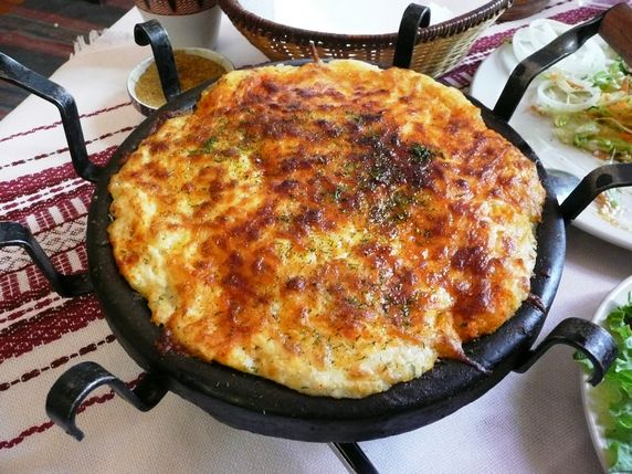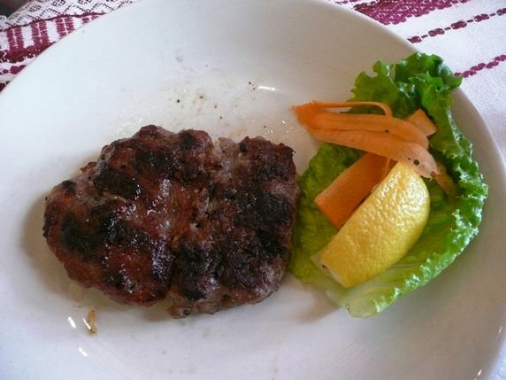 sarma, y es una mezcla de carne de cerdo picada, arroz, cebolla y tomate, envuelta en una hoja de col o repollo (sarma significa "enrollado"). El kyufte está hecho de carne picada de ternera o de cerdo, con condimentos de cebolla y migas de pan. Un plato típico que no suele llevar carne es el patatnik, está hecho de patatas, cebolla, menta fresca, todo ello mezclado y cocinado a fuego lento. El nombre deriva del vocablo local para patata, patato o pateto, con el sufijo eslavo masculino -nik.