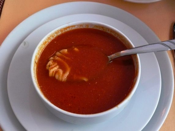 Bucarest. Lo que mas encontramos fueron caldos y sopas, cremas de verduras y muchos preparados de carne, algunos a base de hígados e intestinos. En cuanto al pescado, un dicho rumano dice que "el mejor pescado es siempre el cerdo". Pues eso. Si esto no ha acabado de reventar tu dieta, espérate a ver los postres.