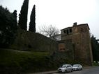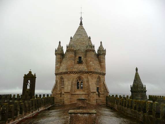 cónicos en punta y el tejado almenado le dan un cierto aire militar. Solo abre para rezos.