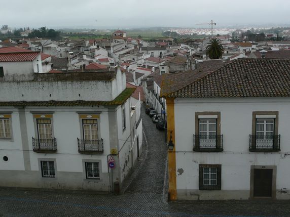 Desde la plaza se tienen unas fantásticas vistas de Evora con sus casas blancas.