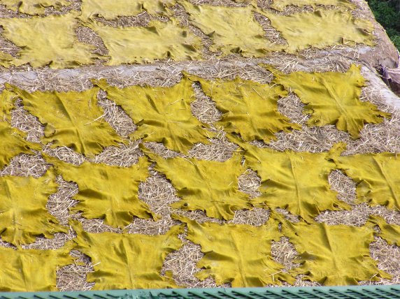 Tintorerías. Se concentran en una calle empedrada, cerca de la Pza Sefarín, donde entre madejas tintadas y charcos de colores, que contaminan aún mas si cabe el río, caminan los tintadores con pies y manos manchadas, absolutamente ajenos a las fotos y visitas de los turistas.