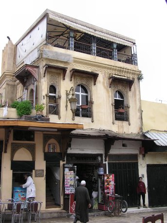 Restaurante. Hay un impresionante restaurante frente al Hotel Mauritania, a 20 metros de Bab Boujeloud, con terraza de mesas bajas, cojines y alfombras al más puro estilo marroquí, buena comida y un te excelente. Pero lo mejor es la música: chill out africano, blues de Mali... CDs 3€, Comida entre 50-120 dirhams Imprescindible (adjunto