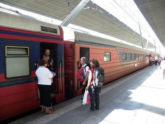 trenes diarios entre Yerevan y Tbilisi (15:35 00:35), que siguen hasta Batumi. El resto del año hay uno nocturno que sale en días alternos. Ni los vagones son nuevos, ni los lavabos gran cosa, pero hay vagón restaurante (aunque todo el mundo se lleva comida y bebida) y es cómodo y puntual. No hay asientos, todos los billetes son de litera. Hay tres tipos de compartimentos, el barato de seis literas abierto al pasillo (4 a un lado y 2 al otro), el de cuatro literas con puerta y el de dos camas, el mas caro. El billete mas barato cuesta 7.800 AMD, compartir risas, comida y bebida (alcohol) con el resto del pasaje es gratis. La