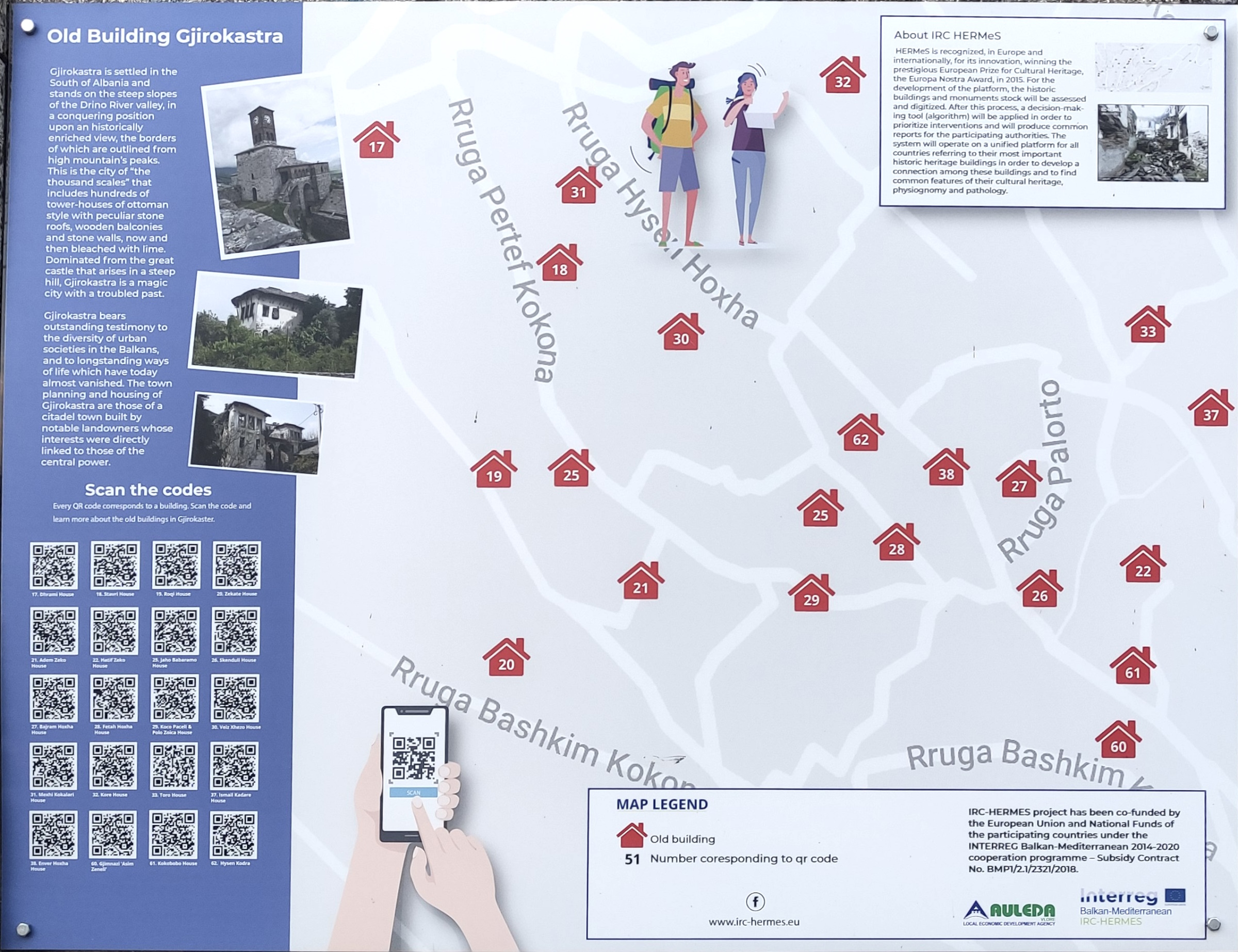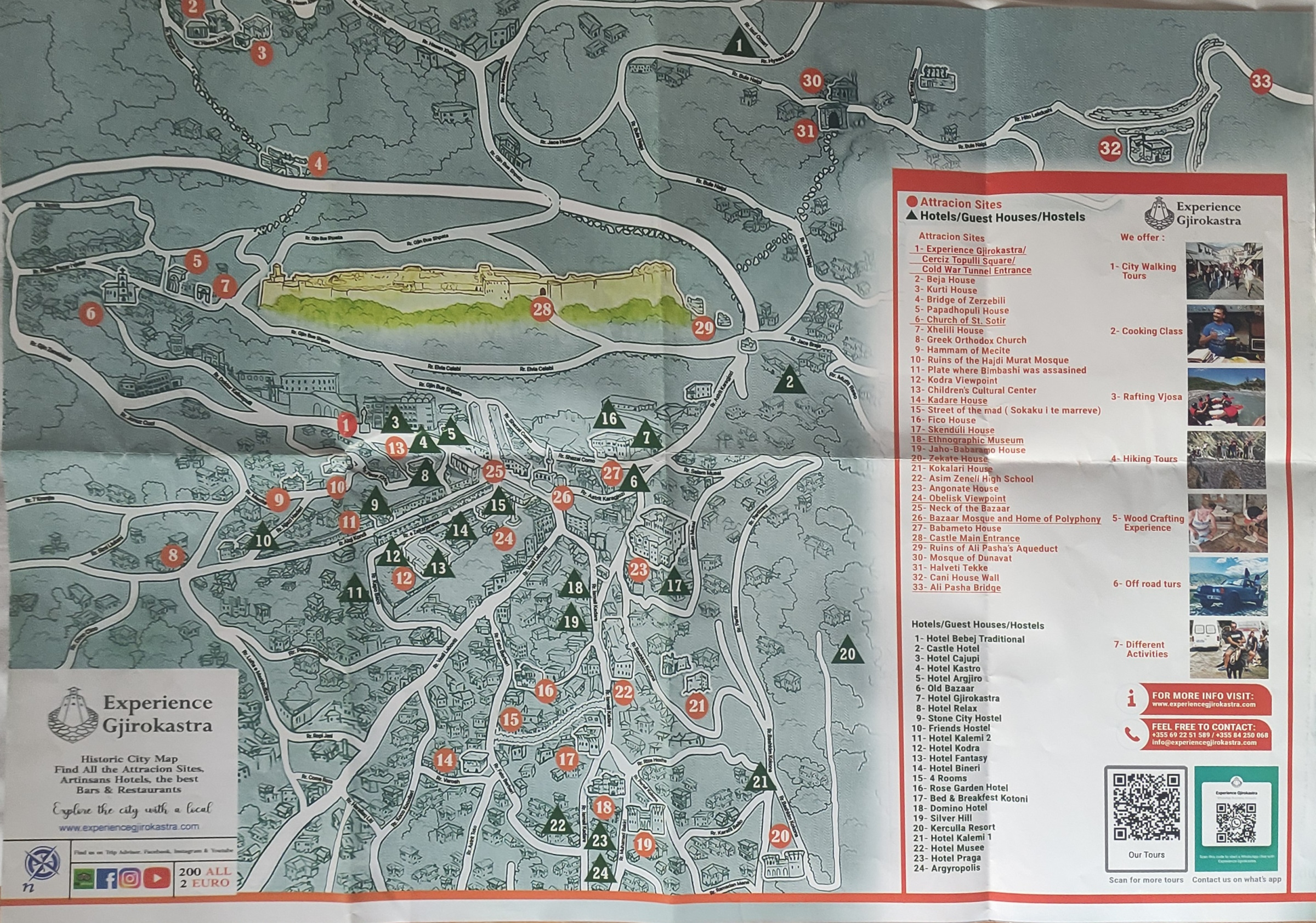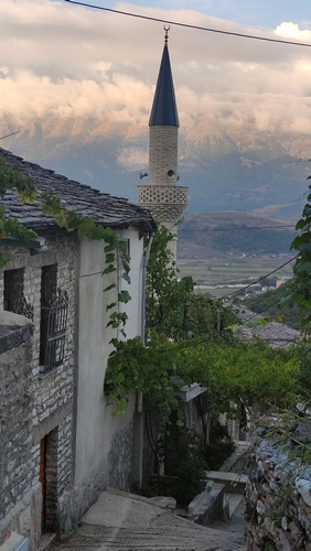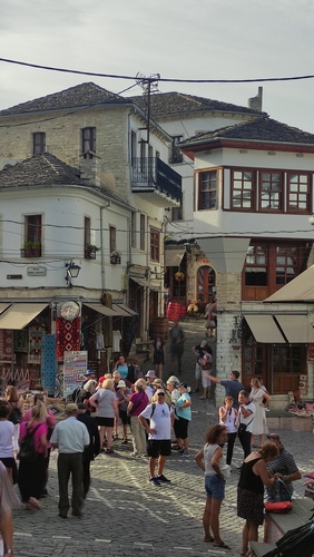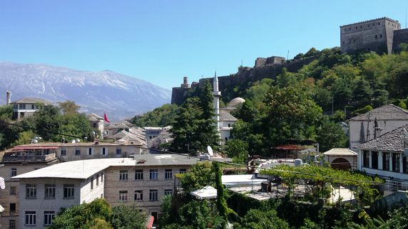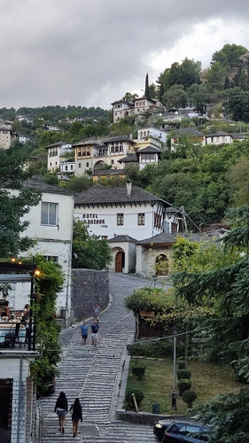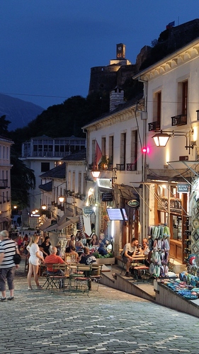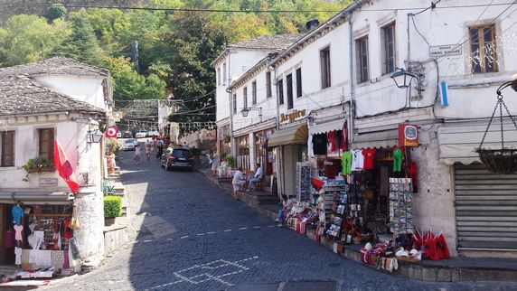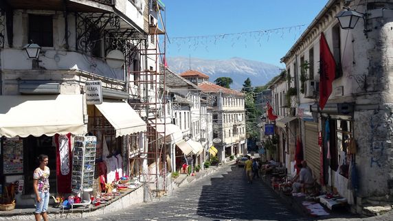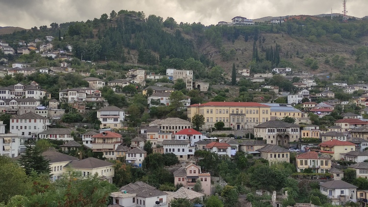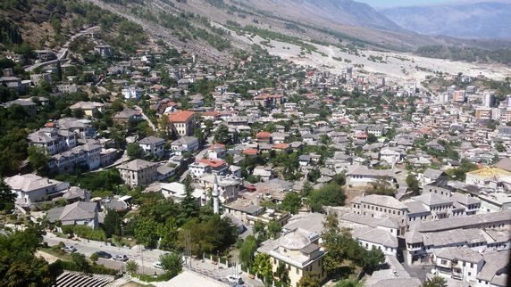 Gjirokastër, cuya ciudad vieja es un raro ejemplo de pueblo balcánico de influencia otomana muy bien conservado. Cuenta con una extensa red de empinadas calles empedradas, distribuidas sobre la ladera de una montaña, que conducen a un castillo del siglo XIII en su cima. Las casas del siglo XIX son levantadas por muros de piedra, que pueden llegar hasta las cinco plantas, y que culminan en un tejado cubierto de piedras planas distribuidas a modo de tejas. Las calles son tan empinadas que, en ocasiones, parte del tejado toca el suelo o los bajos de las casas adyacentes. Aquí nacieron el exdictador Enver Hoxha, que le otorgó el estatus de "ciudad museo", favoreciendo así la conservación de su arquitectura tradicional; y de Ismail Kadaré, el escritor albanés más notable, varias veces candidato al Premio Nobel y ganador del Premio Príncipe de Asturias en 2009, quien en su novela Crónica de Piedra, narra sus años de infancia durante la invasión italiana y alemana en esta ciudad.