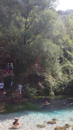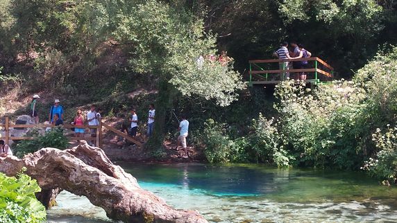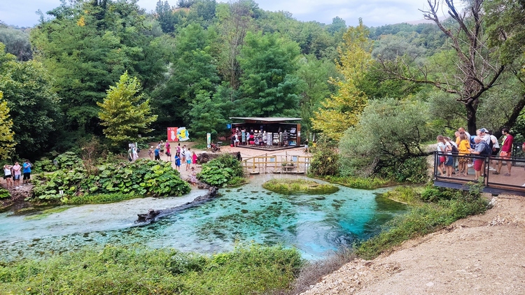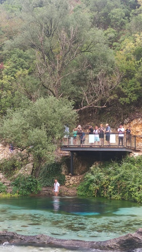 Blue Eye Spring (acceso 50 lek) es un fenómeno geológico natural, donde 18 manantiales ascienden desde las entrañas de la Tierra a una velocidad de 8 m/seg y una temperatura de 10º, creando una charca de unos 15 mts de diámetro, cuyo centro y extremos son de un profundo color azul, que se asemeja al iris de un ojo, de ahí su nombre. La charca está rodeada de pinos, abetos, avellanos, cerezos, y nogales, y aunque el baño está permitido, no hay cambiadores ni duchas. Hay un pequeño parking y un par de restaurantes caros. Si vas por libre lleva comida, es un lugar ideal para hacer un picnic y pasar un rato de relax.
