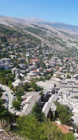 Gjirokastër desde Ksamil, primero hay que tomar un autobús (150 lek, 15 minutos) a Sarandë. Un segundo autobús, siguiendo la ruta del Blue Eye, nos lleva a Gjirokaster (400 lek, 1h30) Una vez en Gjirokastër, desde la ciudad nueva suben autobuses y taxis (500 lek) hacia el bazar. Si queremos ahorrar y hacer un poco de ejercicio, nos espera un empinadísimo paseo de 30 minutos por calles adoquinadas.