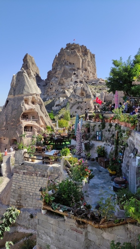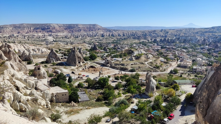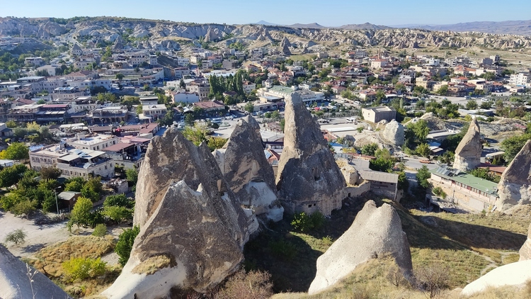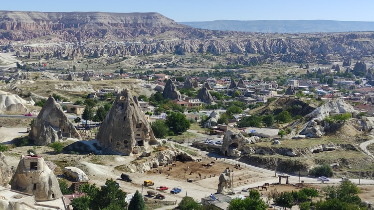 Göreme es una de las pocas poblaciones donde todavía quedan cuevas y chimeneas de hadas habitadas o donde se han instalado comercios, logrando integrarse con el paisaje sin alterarlo ni destruirlo, ofreciendo un
