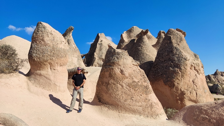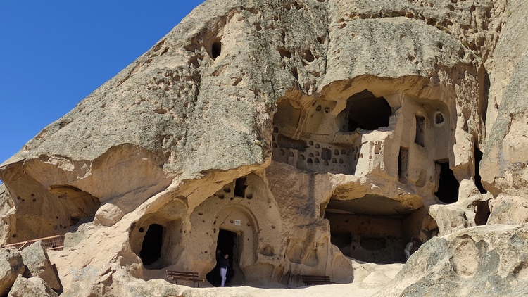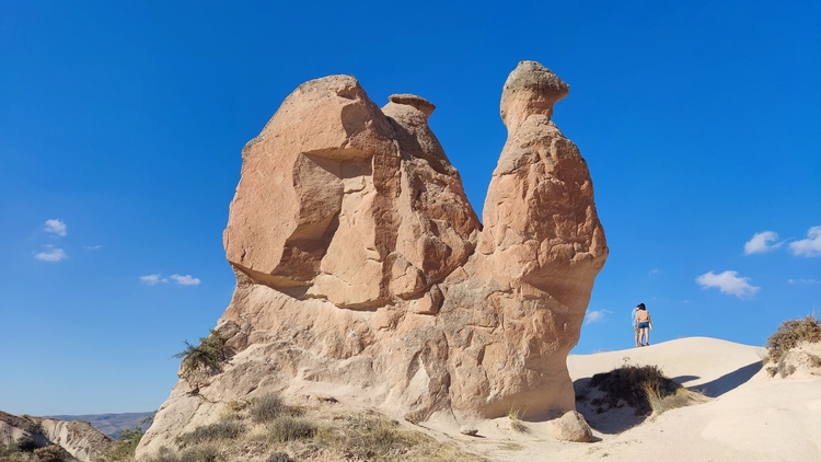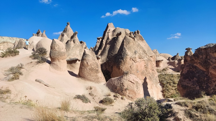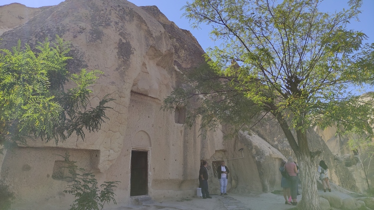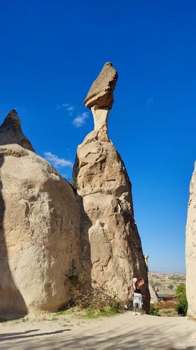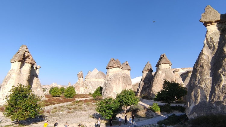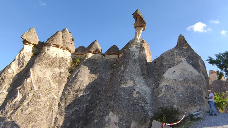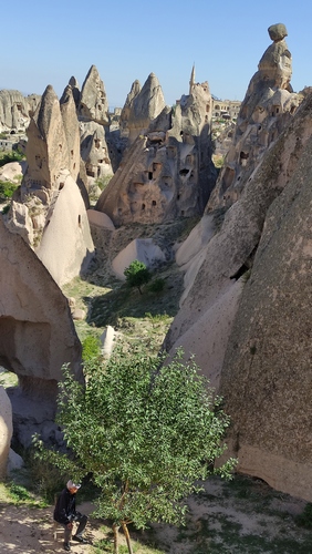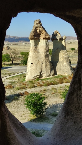 Paşabağ monks valley. Aprovechando la facilidad para modelar el terreno, se han excavado centenares de viviendas, iglesias y ciudades subterráneas enteras en la zona. Este lugar fue residencia y escondite de monjes durante la época. romana. También vemos algunas chimeneas de hadas creadas por la erosión, algunas de ellas superan los 30 mts de altura.