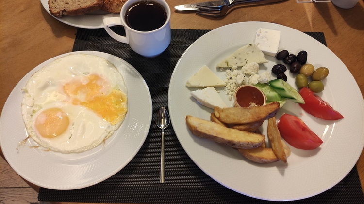 ayran, varios entrantes (gratuitos) y dos tés, 75 TLR.