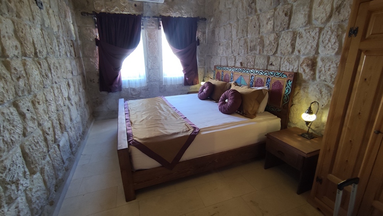 chill out con dos pequeños sofás, dormitorio con cama doble, y baño privado. Desayuno incluido, buffet libre estilo turco, servido en la terraza con espectaculares vistas de la ciudad y de los globos aerostáticos que se elevan cada día al amanecer. Organiza excursiones en la zona y actividades culturales. Máxima ayuda y disponibilidad. Wifi deficiente en la habitación.