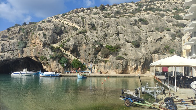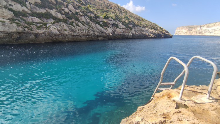 Xlendi Grotto, una pequeña cala, provista de escalera de acceso, donde no llegan las embarcaciones, ideal para nadar y hacer snorkel a tus anchas.