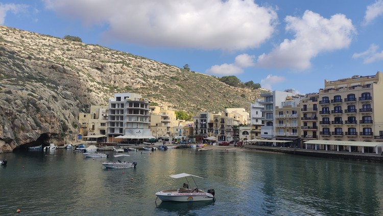 Xlendi Bay, en el centro de la costa occidental, una buena ubicación desde donde recorrer la isla de Gozo, todo queda a menos de media hora en coche.