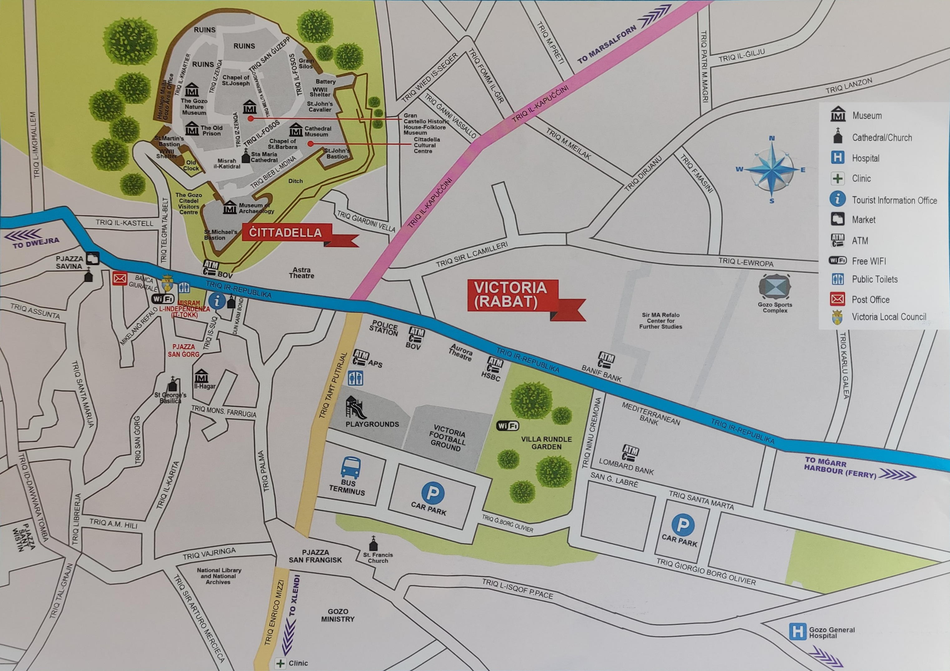 Victoria, la capital de la isla, para comer. Lo más destacado es la Ciudadela accesible subiendo una pequeña colina desde el barrio viejo.