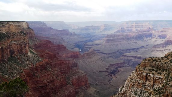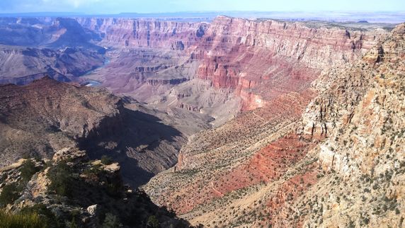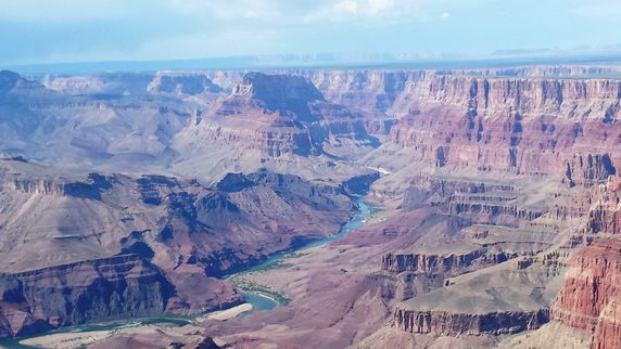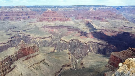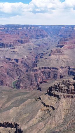 Grand Canyon es la evidencia de 2.000 millones de años del río Colorado socavando el terreno, capa tras capa de sedimento al mismo tiempo que la meseta del Colorado se elevaba. Tiene unos 446 km de largo, entre 6 y 29 km de ancho, y una altura de más de 1.600 mts. Está dividido en