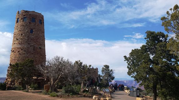 Desert View. Hay un camping, una gasolinera (2,79$ el galón), una tienda de comestibles y un pequeño centro de información. Pero su lugar más emblemático es la