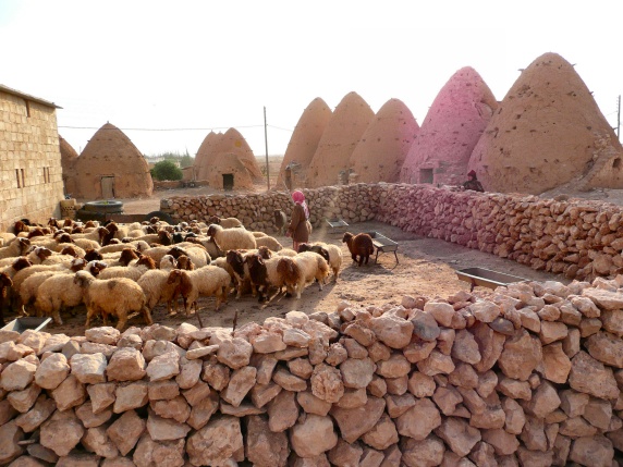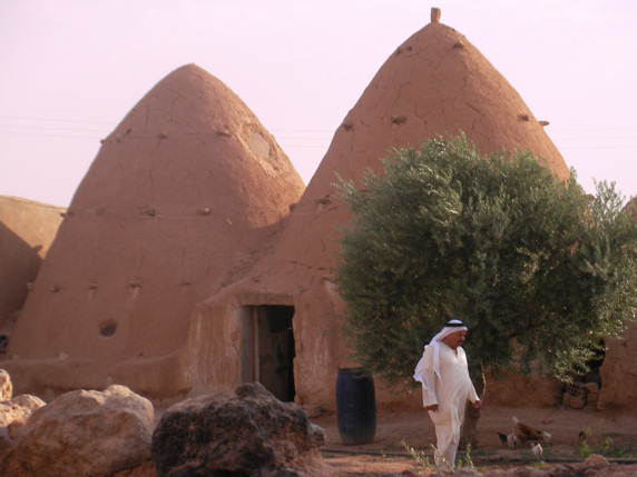 Casas Colmena conviven actualmente con modernas construcciones de cemento. Estas casas son estructuras cónicas de barro encalado, con una solo puerta de acceso y sin ventanas, en cuyo interior hay una sola habitación. Mas propias de África subsahariana que de esta parte del mundo, están estupendamente adaptadas al clima y mantienen una temperatura constante todo el año. Acabamos tomando el té con una de las familias que viven en ellas, 100 SL.