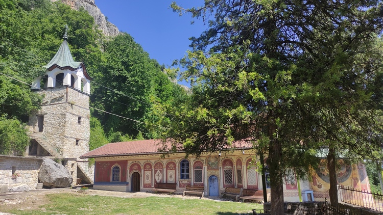 Monasterio Preobrazhenski (acceso 4 lev) o Monasterio de la Transfiguración, fundado en el siglo XI. Saqueado e incendiado en diversas ocasiones por los otomanos, y finalmente destruido por completo, en 1.825 se inicia una restauración que lo deja tal como lo vemos hoy en día, que duró siete años. Es una iglesia en forma de cruz con tres ábsides y nartex abierto. Los frescos ocupan todos los muros exteriores de la iglesia, así como el techo y paredes interiores. Unos 30 años mas tarde se añadió el campanario y los edificios residenciales. Aún pueden verse una cuantas rocas de grandes dimensiones que se desprendieron del acantilado en 1.991 y que estuvieron a punto de acabar con el complejo.