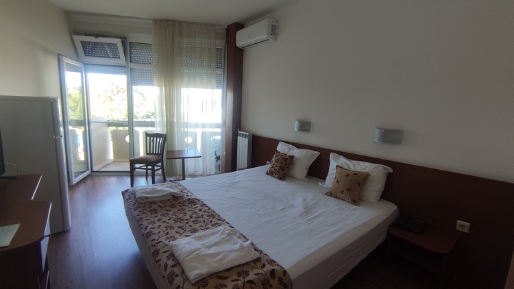 Spa Hotel Augusta, 180 lev. Enorme complejo con capacidad para 600 huéspedes. El precio incluye acceso completo a las piscinas interiores y exteriores, saunas, baños de vapor, y algunos tratamientos terapéuticos. Habitación doble con baño privado, terraza con vistas a la piscina al aire libre y sus alrededores, parking y desayuno incluido.