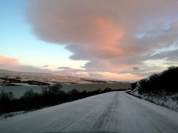 Como no tendremos el coche arreglado al menos hasta el lunes, hemos alquilado otro en Herz con la intención de acercarnos a Höfn, y durante el fin de semana visitar los glaciares de Jokulsarlon y Fjallsarlon. Son cuatro horas de camino, y otras tantas de vuelta el lunes para recoger el coche con la llave arreglada, pero por lo menos no estamos parados en Egilsstaðir, donde realmente hay muy poco que hacer. El día amanece frío, cuando salimos de Egilsstaðir estamos a -5°, en algún momento del día el termómetro del coche marca -11°, y estamos a -3° al llegar a Höfn, habiendo ya oscurecido.