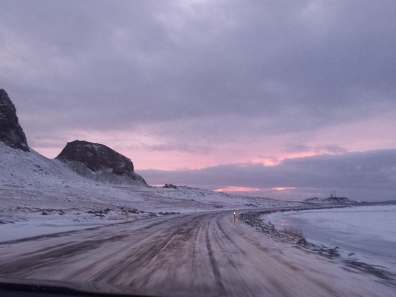 Netto y volvemos al concesionario a pagar. Hemos decidido volver a Höfn, aunque perdemos los 40€ de la reserva que teníamos en un hotel de la ciudad. Volver hoy mismo nos permitirá afrontar los dos días restantes un poco más relajados. Salimos a las 15h y a las 19h ya estamos allí. La mayor parte del trayecto es con noche cerrada, pero aunque hay nieve en la calzada, no nieva ni hace viento. Hemos tenido suerte.